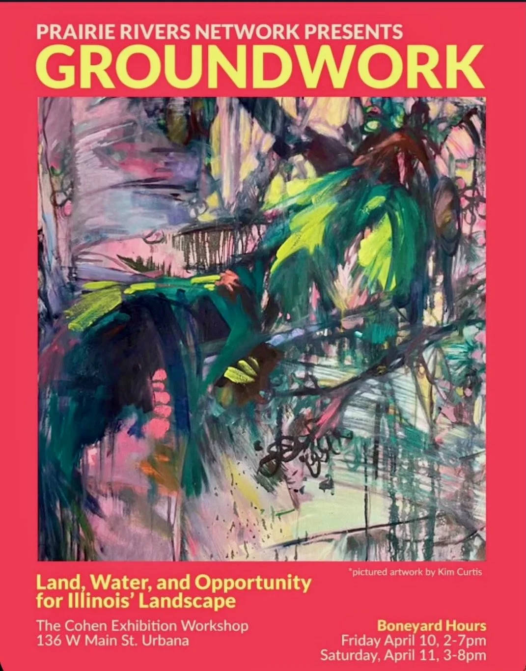 Curated by Prairie Rivers Network, Groundwork includes the work of five artists making climate research visible. Open every Friday 5-8pm in downtown Urbana. Stay tuned for future artist talks and environmental programming